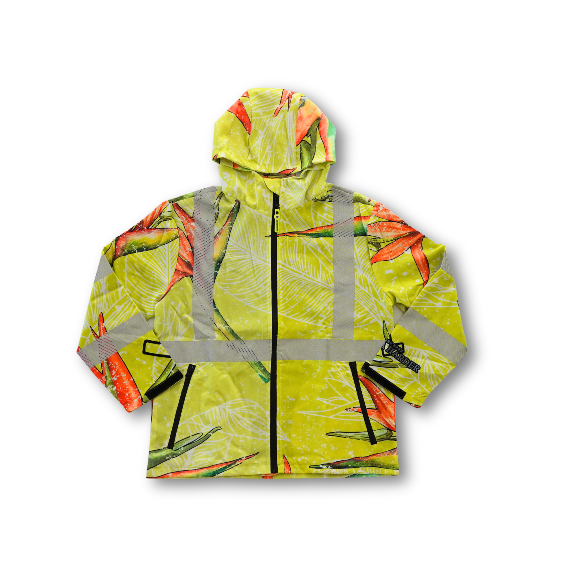 This high-visibility, weather-resistant jacket combines essential safety features with everyday wearability. Designed to meet Class 3 HI-VIS standards, it features 2-inch reflective striping that keeps you visible in low-light conditions. The waterproof zippers seal out moisture, while the Paradise print adds a touch of personality to your workday. Whether you're managing traffic, working construction, or handling outdoor duties, this jacket delivers the protection and comfort you need to stay confident on the job.